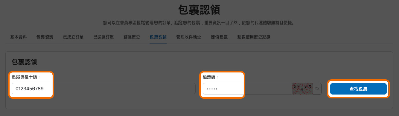 包裹認領教學(建議使用Chrome瀏覽器)