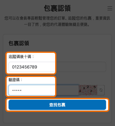 STEP 2. 輸入日本境內追蹤碼後10碼,並完成驗證碼填寫,點擊 查找包裹。